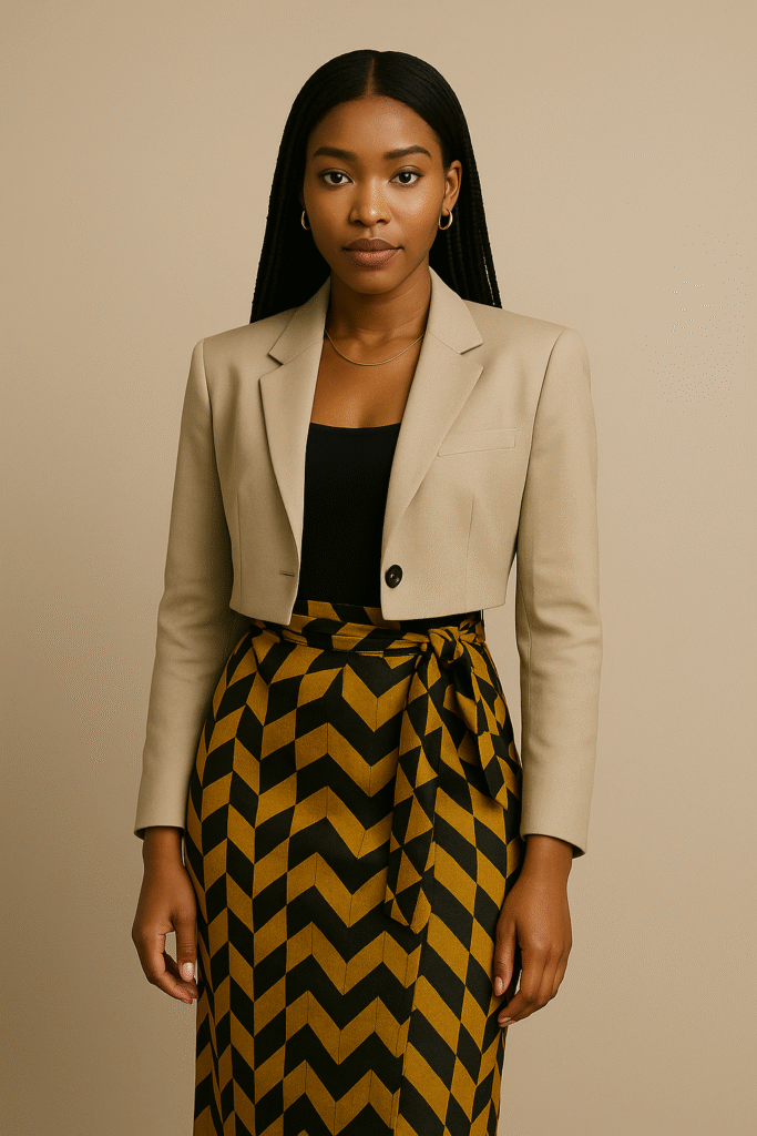 ✔ A wrap skirt or accessory with African texture or bead elements