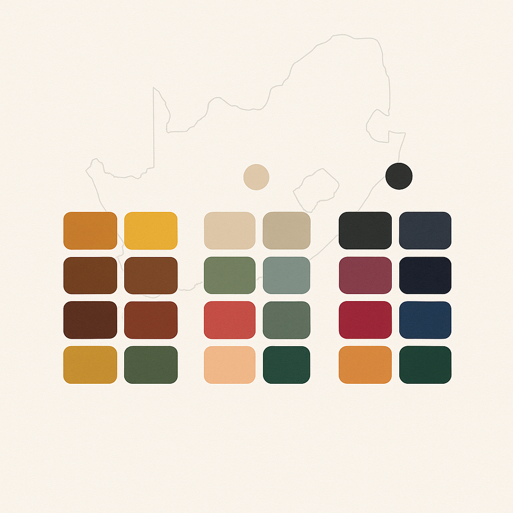 These swatch families are tuned to South African light and are easy to find in local stores. HEX codes are included if you create digital mood boards or shop online.