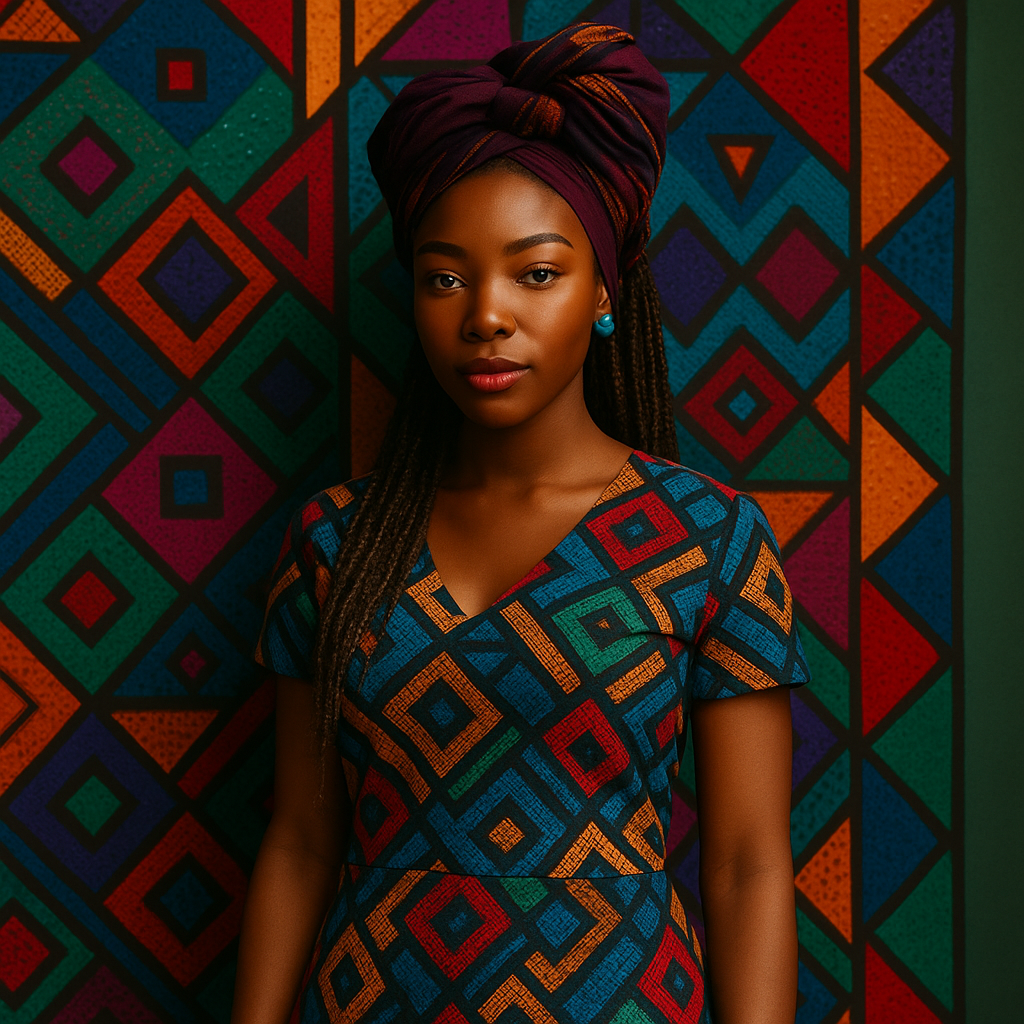 Throughout history, African textiles have carried emotional significance — woven patterns that encode stories of family, ancestry, and pride. Alfridah Kgabo Matsi revitalizes this heritage by blending ancestral color codes with modern emotion.